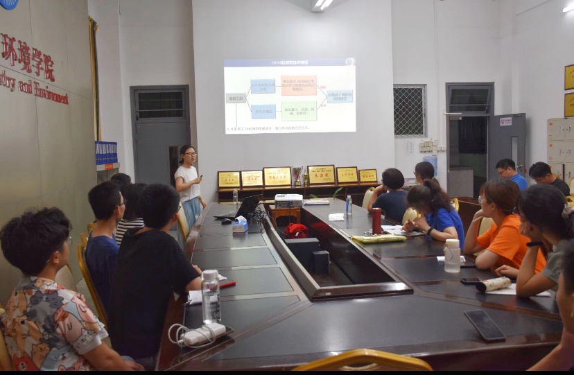 论坛中,金美燕博士和陈桂庭博士分别作题为《三维荧光光谱法(3D-EEM)表征淡水生态系统中溶解性有机质(DOM)的组成及其动态研究》和《有机太阳能电池的阴极界面工程》的精彩报告。现场学术氛围浓厚,青年教师、学生代表均对专题内容产生了浓厚的兴趣,就环境污染物的生态响应展开了热烈了的讨论。