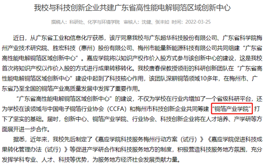(八)两年来,学院以新专业及现代产业学院建设推进特色发展:为助推梅州建设铜箔地方特色产业集群,打造成为“中国铜箔之都”,学院积极申报了现代产业学院“铜箔产业学院”,已成功被广东省教育厅批准,目前各项工作正稳步推进;同时,申办“材料科学与工程”新专业,满足前沿学科建设需求。