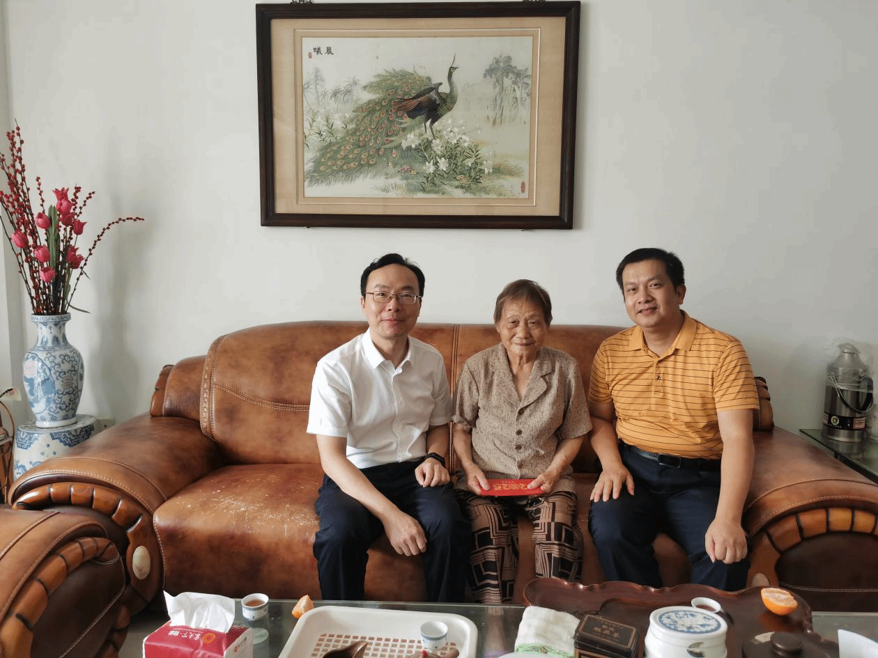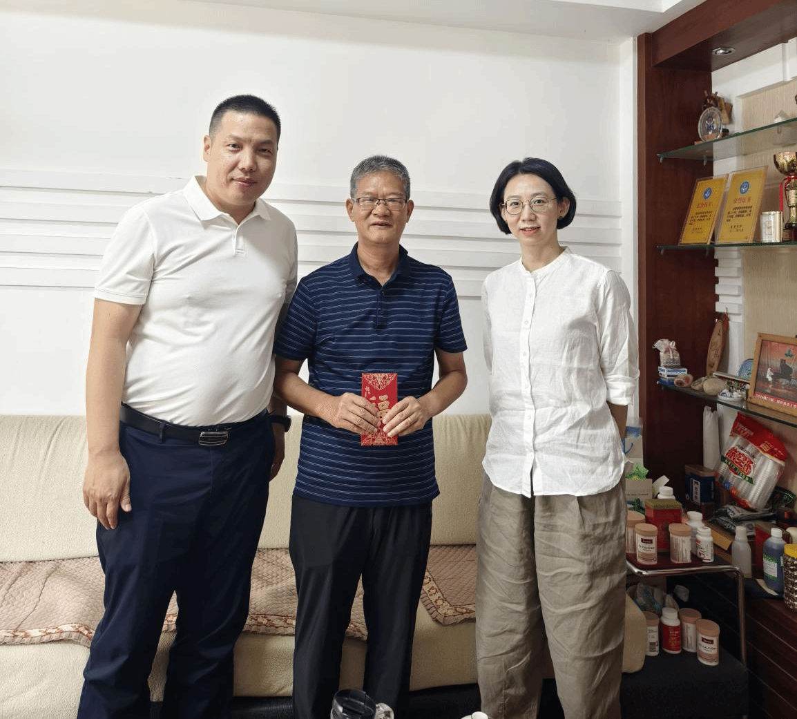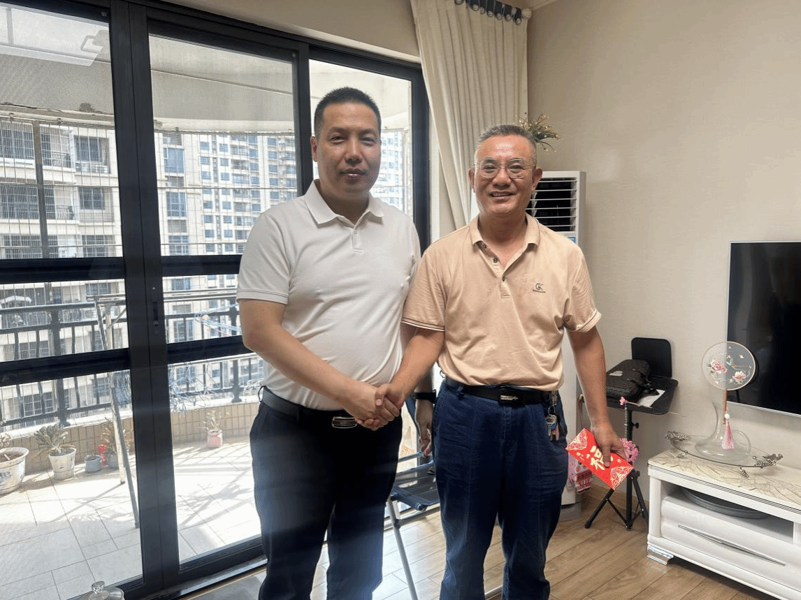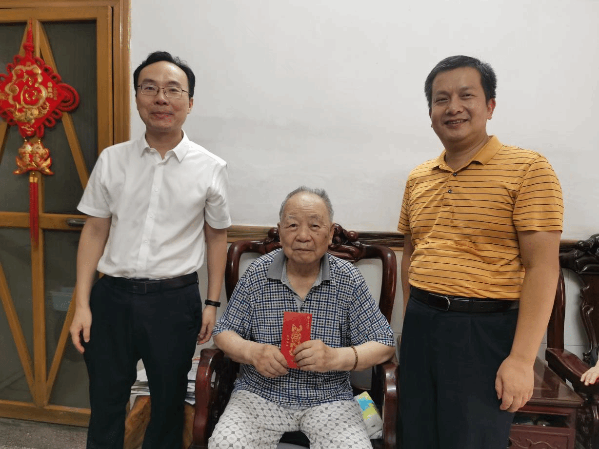 在庆祝中国共产党成立 104 周年之际,为深入贯彻落实习近平新时代中国特色社会主义思想及党的二十大和二十届二中、三中全会精神,扎实推进深入贯彻中央八项规定精神学习教育,学院积极开展“七一”走访慰问活动。学院党委副书记(主持党委工作)叶亮晖、党委副书记张健、学院工会主席刘茹、办公室主任和辅导员组成慰问组逐户拜访老党员。