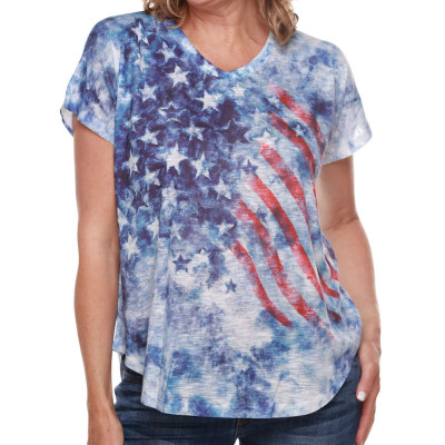 Women's Patriotic Tie Dye Painted Stars T-Shirt